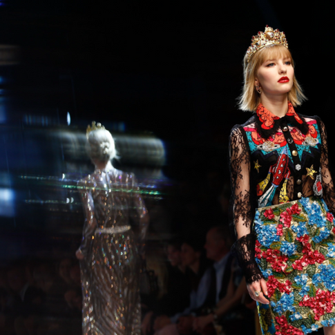 Transparências, rendas, looks sérios com meias calças furadas, rendadas...jeans rasgados, customizados, desenhados, bem casual... muito animal print, florais, tudo com um toque de realeza, detalhes em dourado e na cabeça, uma coroa lindíssima. Eu quero!