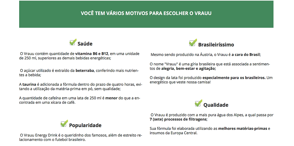 ''Hedy, recomendo para os atletas do seu espaço, pois o energético é indicado para a prática de atividades esportivas e para os clientes do restaurante também, o Vrauu Energy Drink possui sabor diferenciado, garantindo qualidade premium ao produto.''